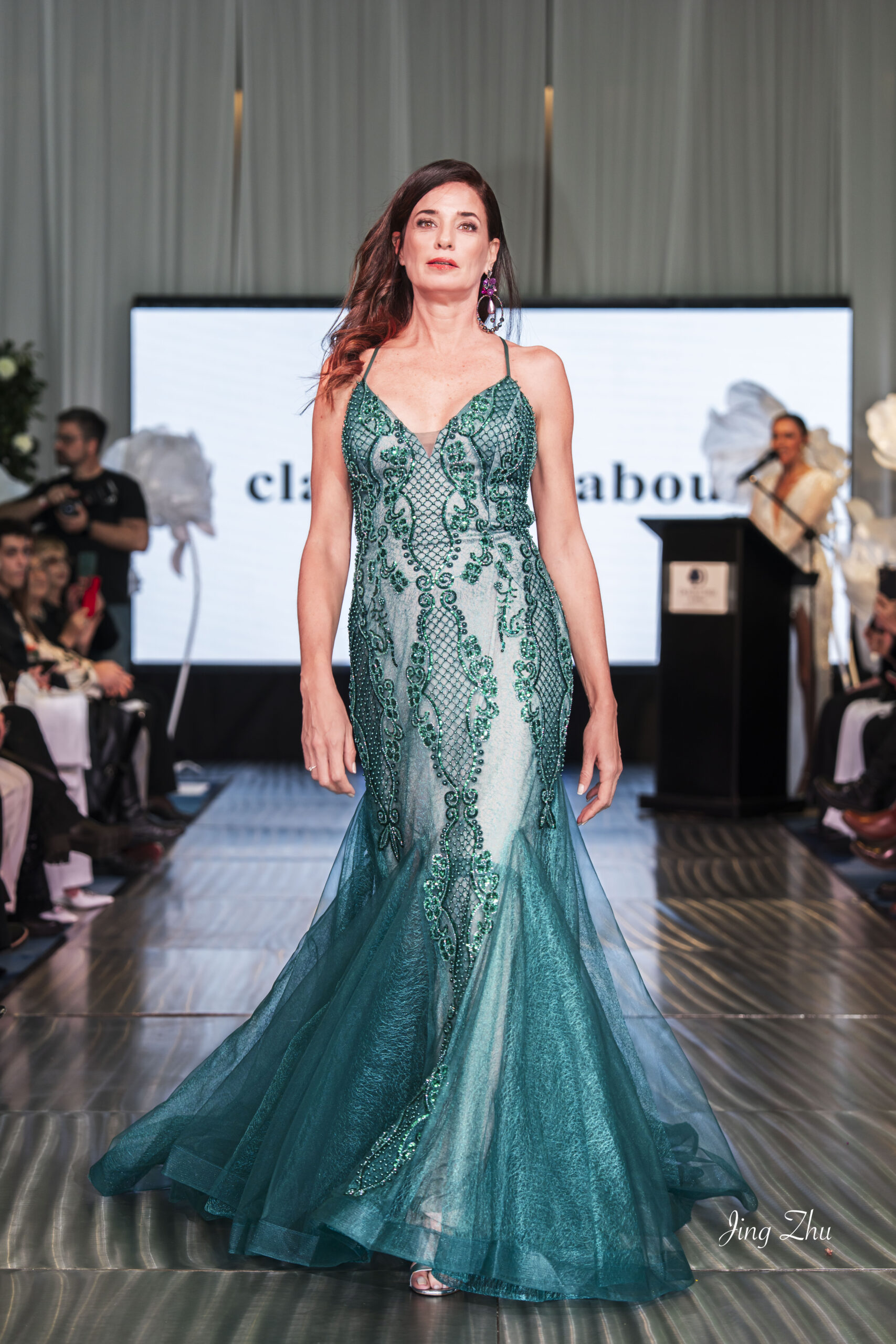 Seductor diseño bordado en canutillos y paiettes, asirenado, con espalda sugerente